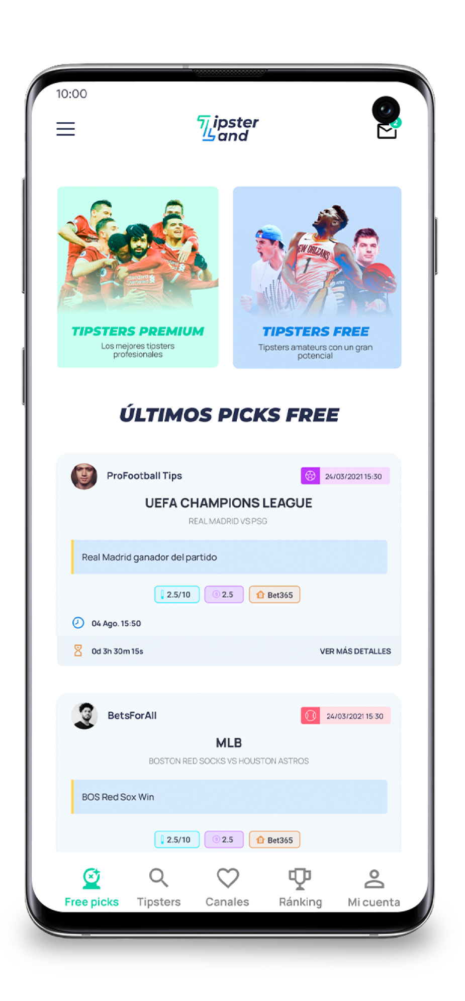 Notificaciones pushRecibe notificaciones instantáneas en los picks de tus tipsters favoritos gracias a nuestra app.